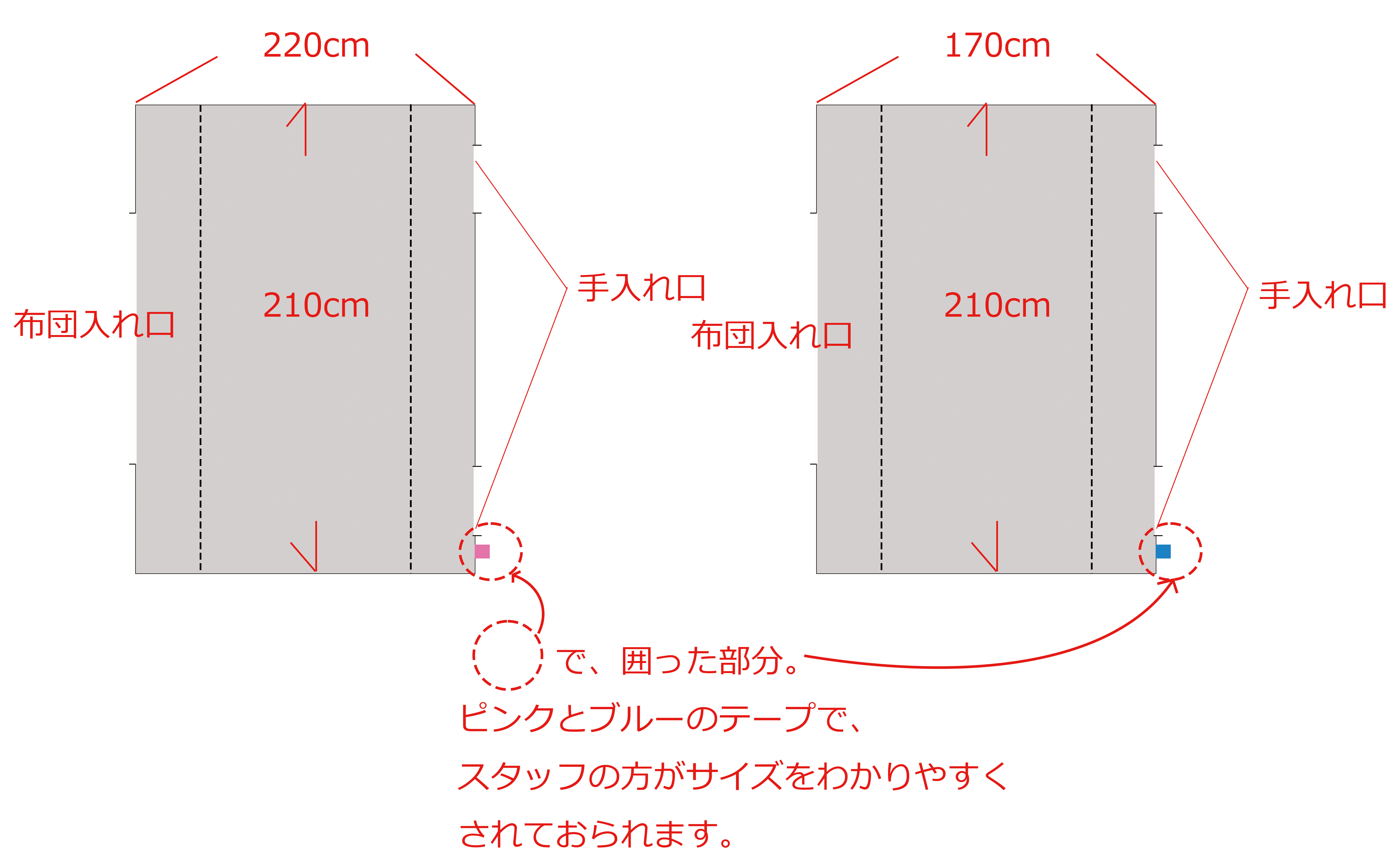 お部屋の中にサイズの違うマットレスがあると複数のカバーを素早くセットしていく工程できる限りストレスすくなく作業していただけるよう、ご相談をいただきますと、ご提案をさせていただきます。