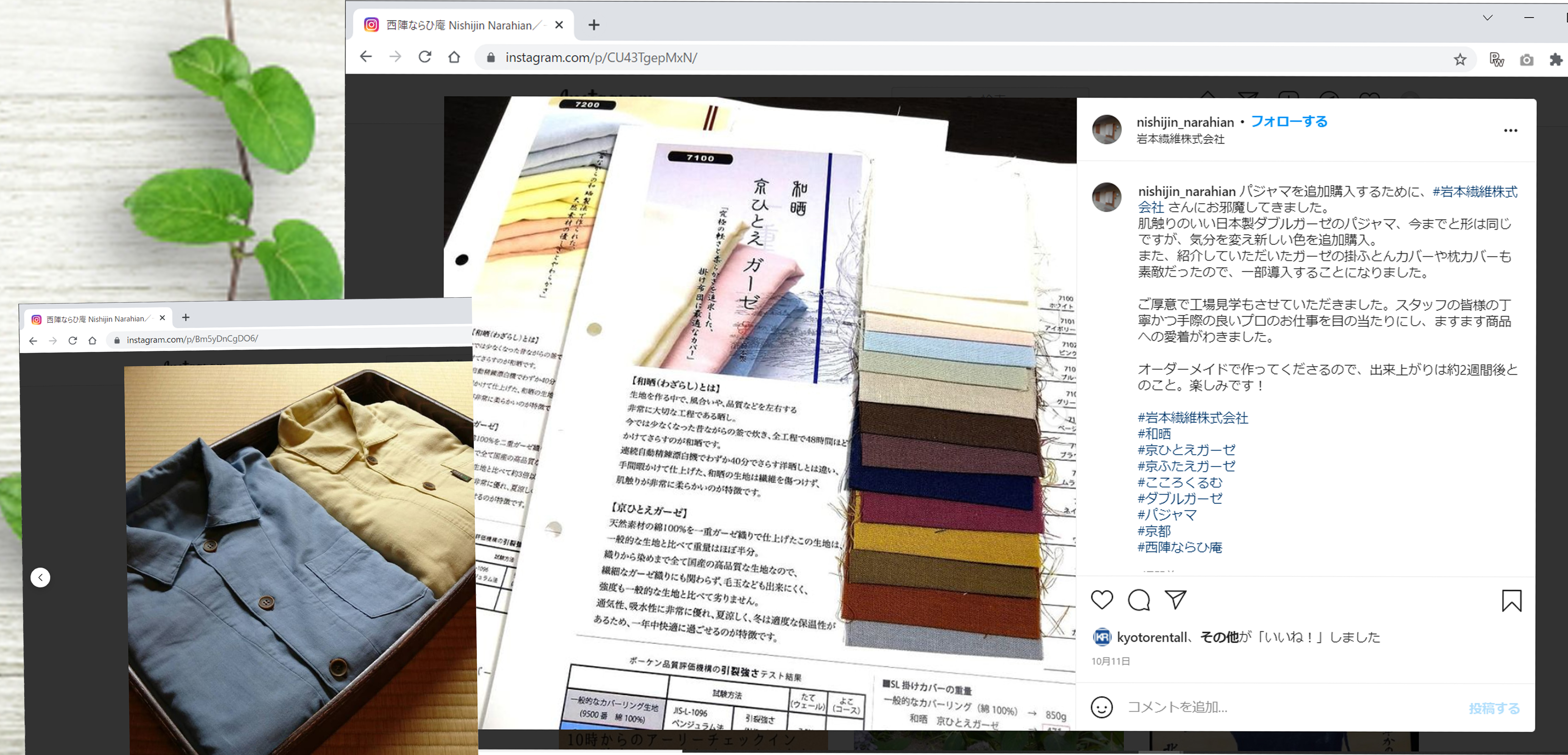 5年程前から弊社のガーゼパジャマをお部屋にご用意いただいていたようです・・・